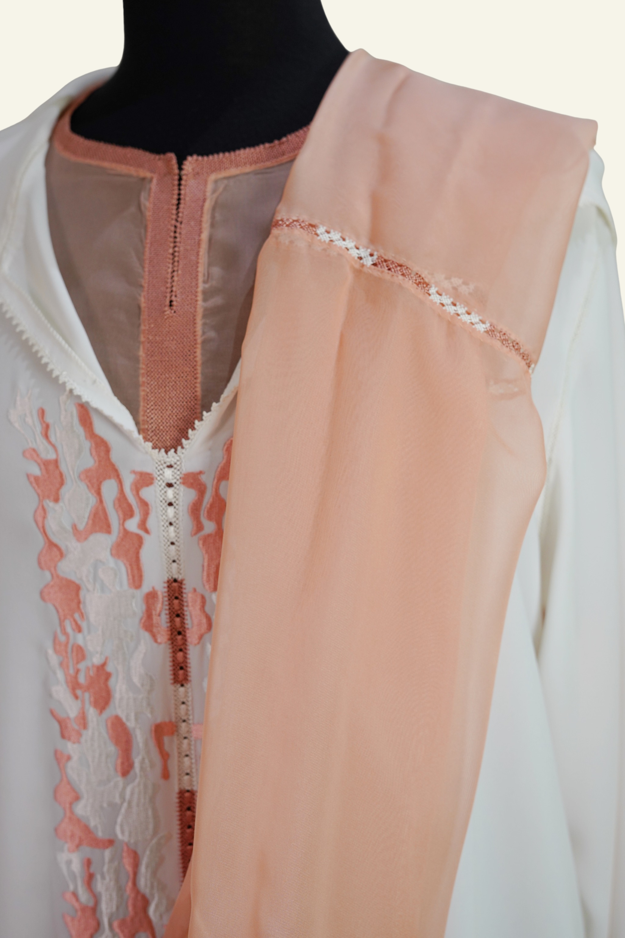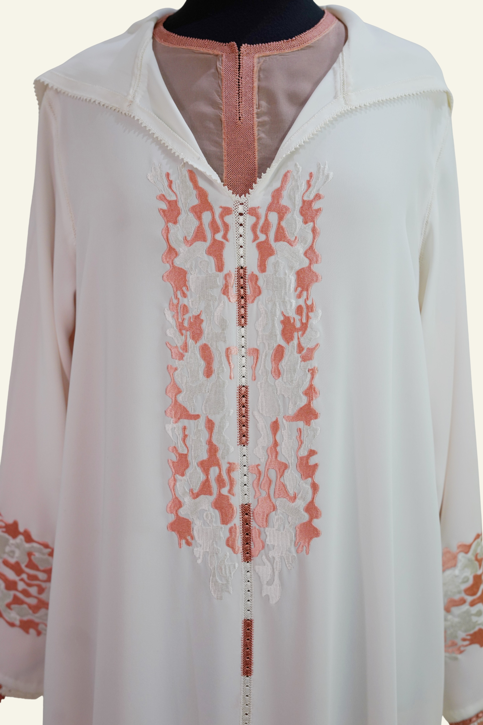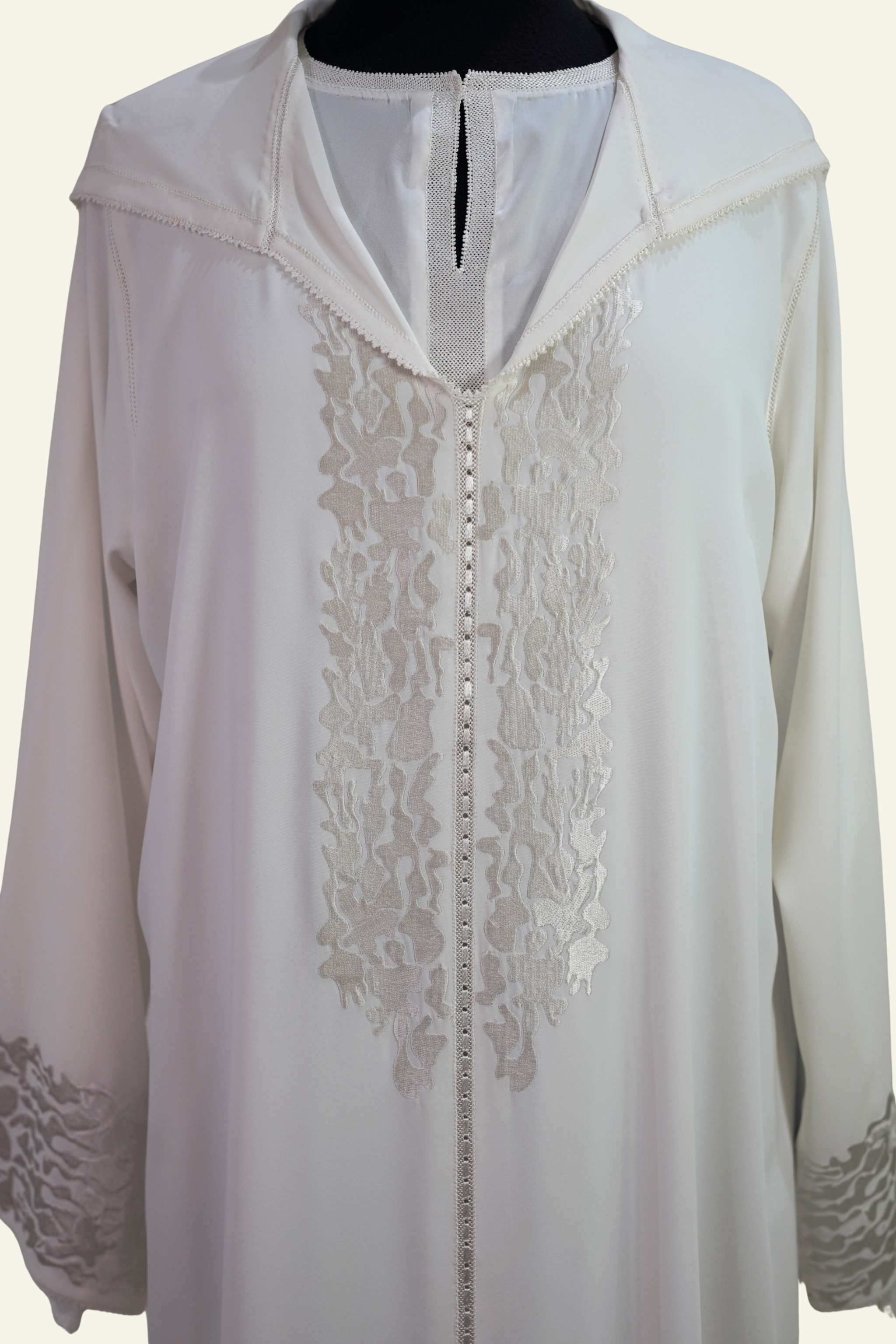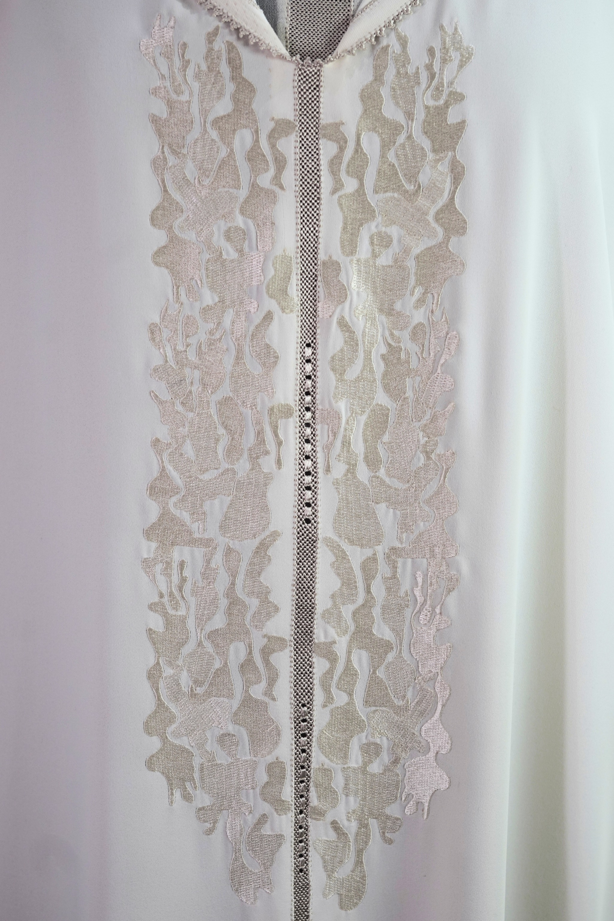 Jellaba en crêpe georgette travaillée en randa et tarz.
