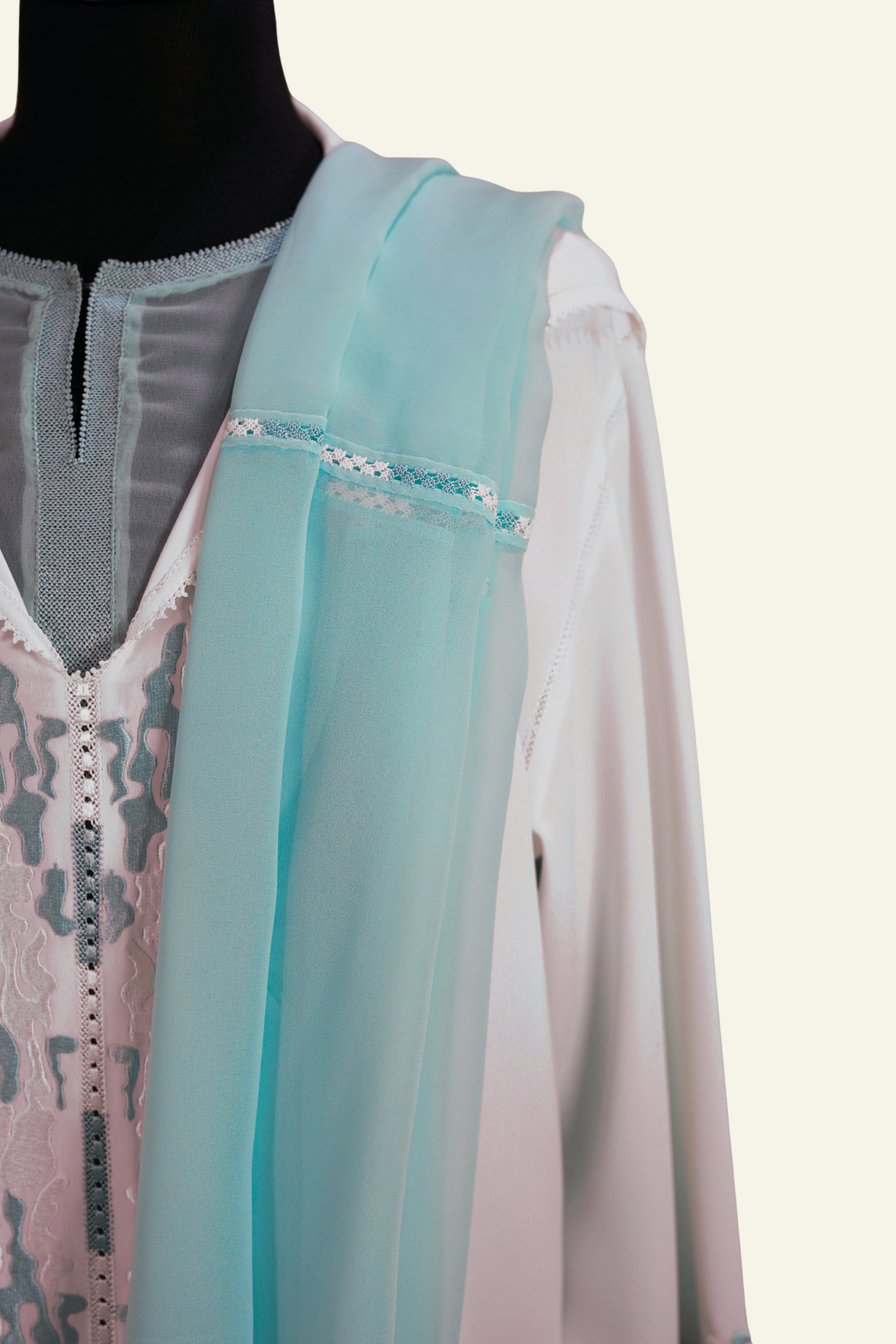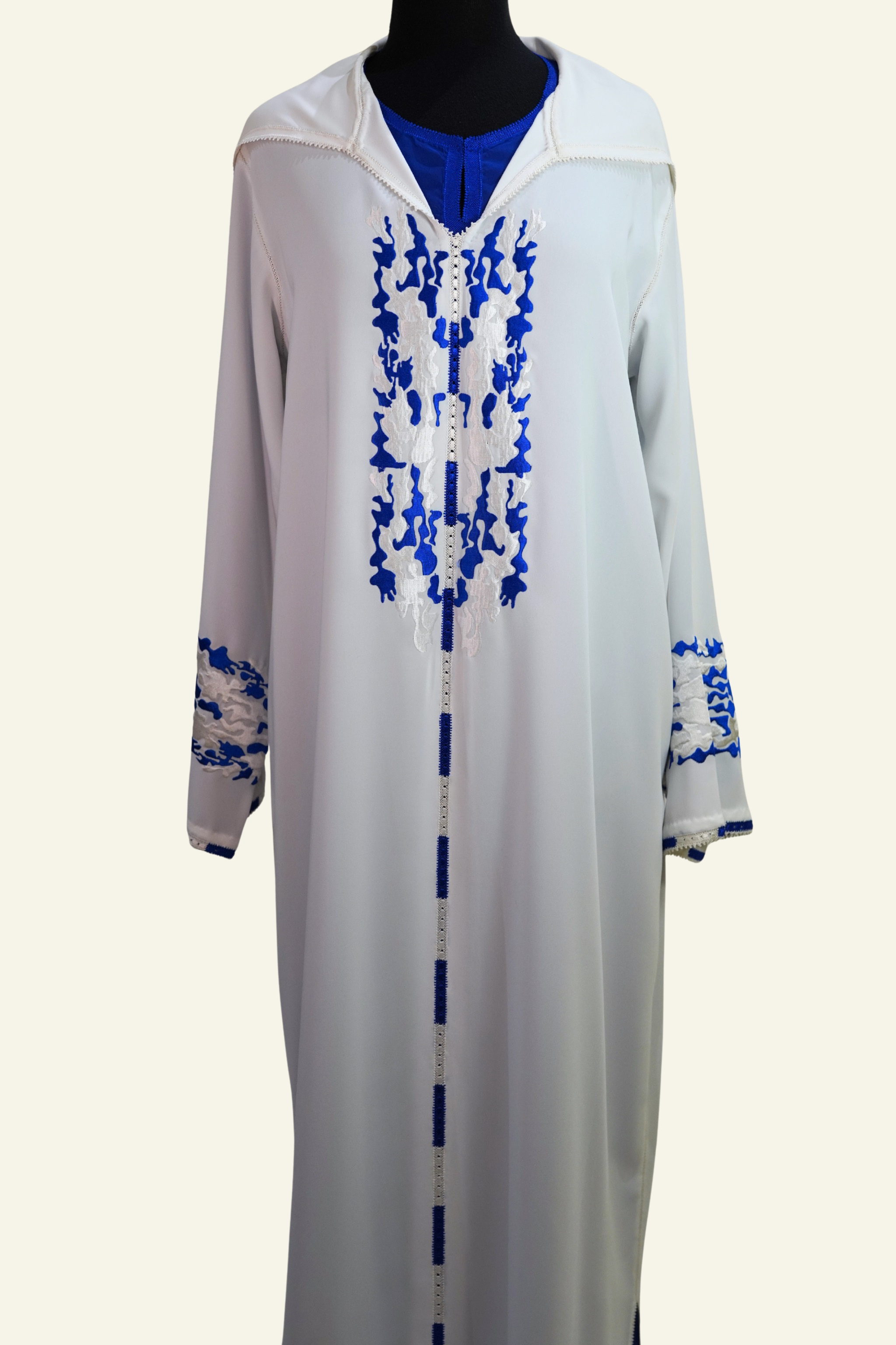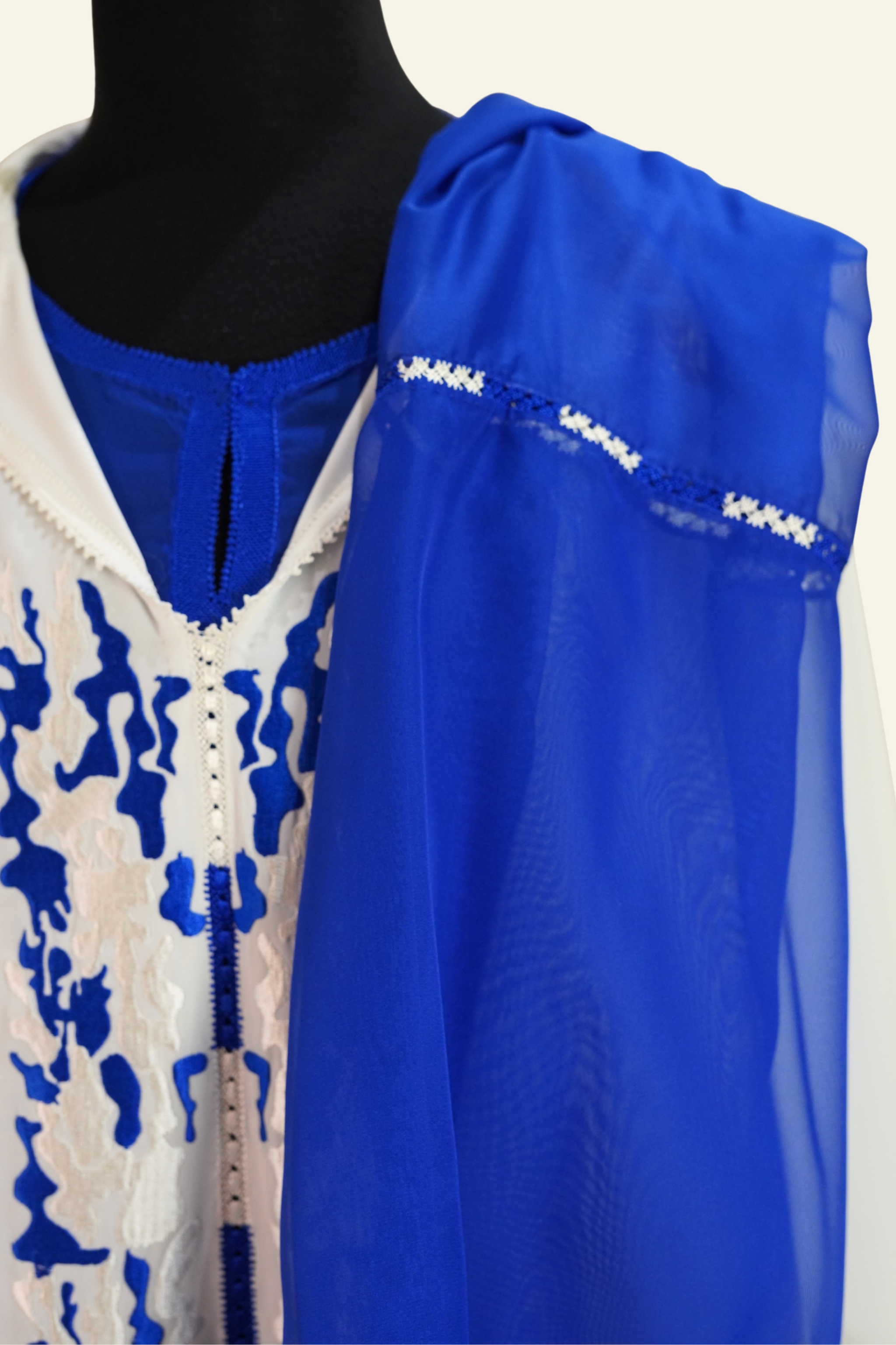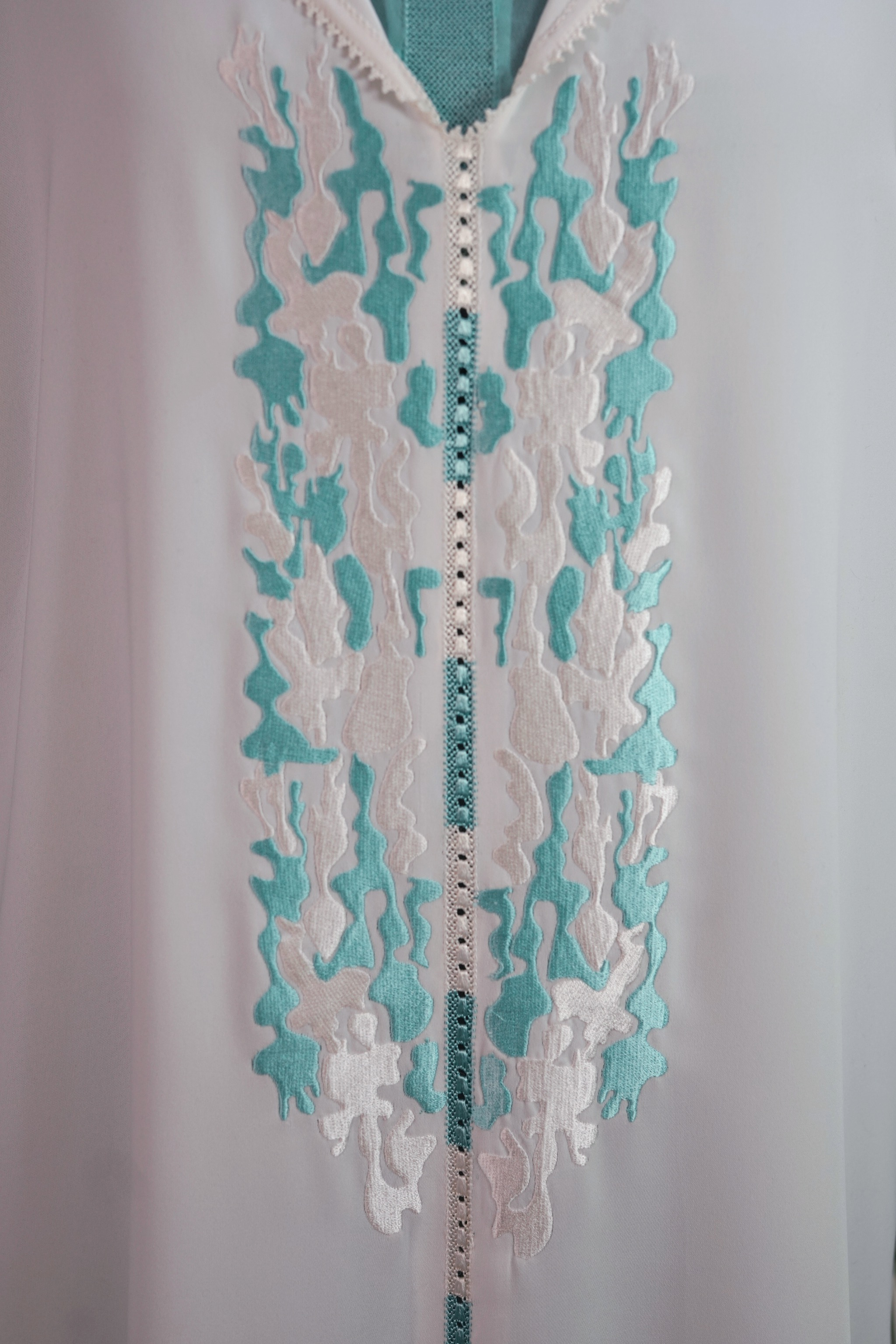 Jellaba en crêpe georgette travaillée en randa et tarz.